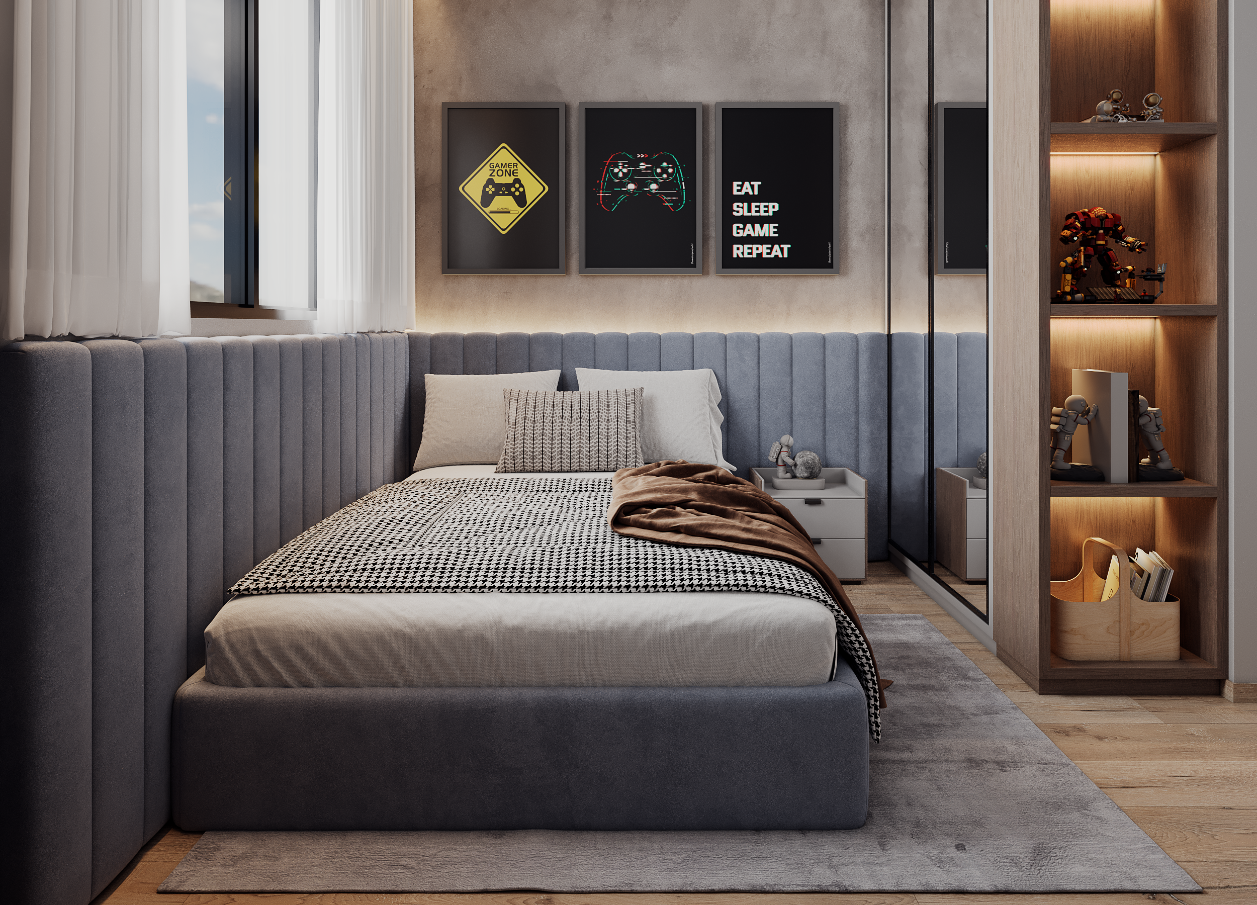 Teto da área social rebaixado em gesso.
